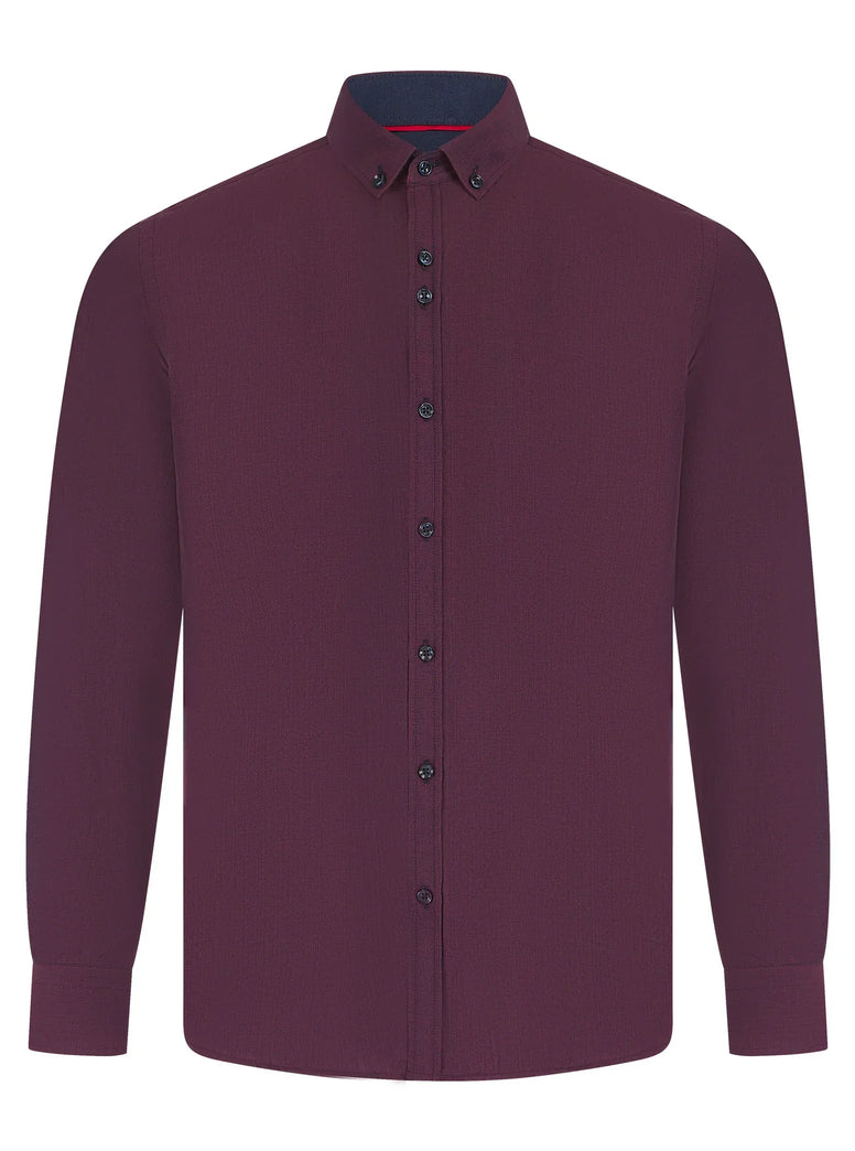 Elevate your wardrobe with the Spectre Luxury Shirtmaker’s Claret style, crafted from premium 100% cotton in a refined two-tone wine tonic fabric. This tailored fit, long-sleeve shirt features a distinguished button-down collar, combining comfort and elegance. Perfect for sophisticated occasions, it offers timeless style with a contemporary edge.